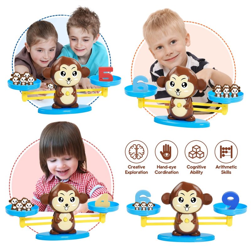 - PERFECT GIFT FOR CHILDREN: It's an ideal gift for children's day, birthdays and Christmas. Make play time fun with this cute monkey toys, get your little ones excited about learning with scale game- the perfect preschool learning tool! Ideal balance scale toy for 3 year olds boys and girls to play.
