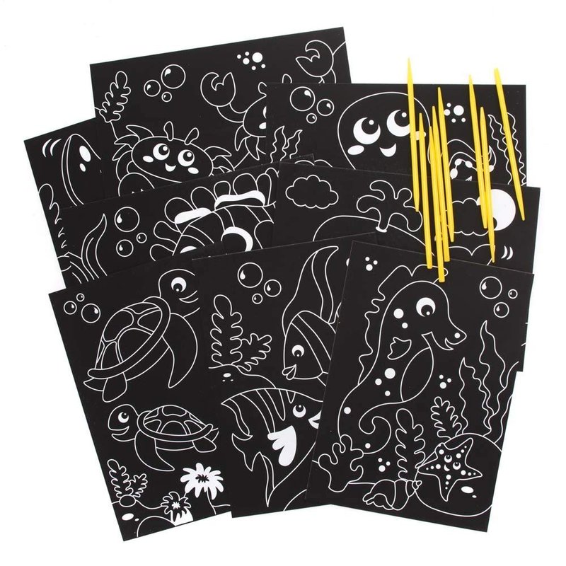- Included in the Pack: 8 scratch art pictures in assorted sealife designs to decorate with the scratch tools. Pictures measure 21 x 15 cm (8.2 x 5.9 inch).