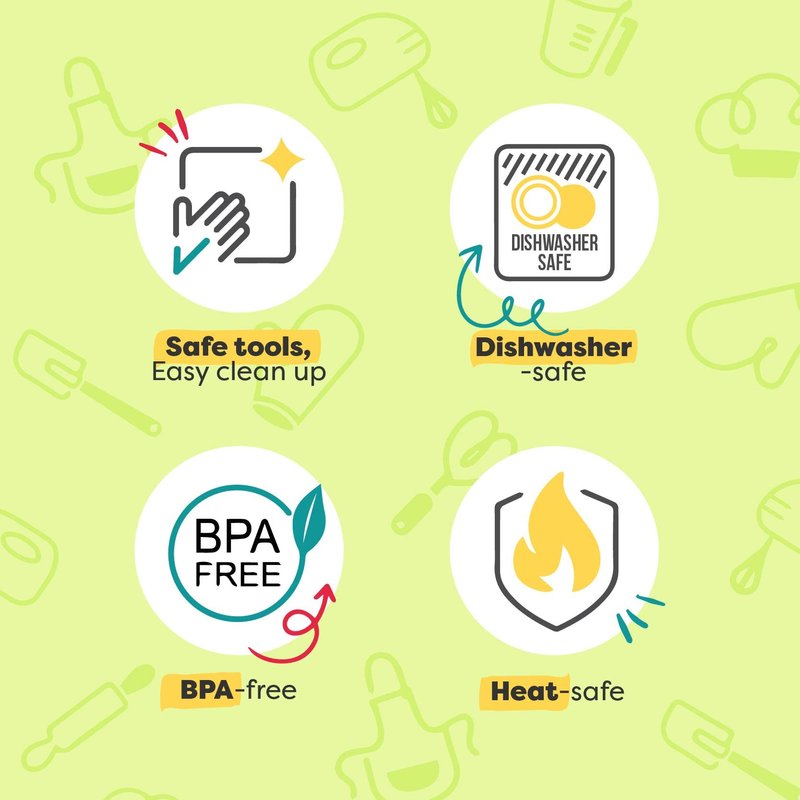 - KID SAFE KNIVES AND PEELER: This set is made for real food, just easier and safer for kids. This kids chef knife has a blunt tip and serrated edges to cut food easily without nicking skin. Perfectly sized for little hands and with easy-to-grip handles, these knives for kids are safe to use and fun for your little kitchen helpers.