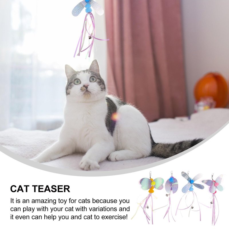 balacoo 4 Pcs Cat Teaser Wand Refill Kit, Butterfly Dragonflies Bee Teaser Toys Replacement for Cat Teaser Wand, Kitten Exercise Toys for Cat Dog Puppy