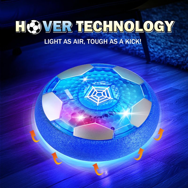 - [Innovative Hover Design] No matter the weather, experience the thrill of air soccer at home! This hover ball floats smoothly on any hard surface—whether wood, tiles, or concrete—turning any room into an instant soccer field.