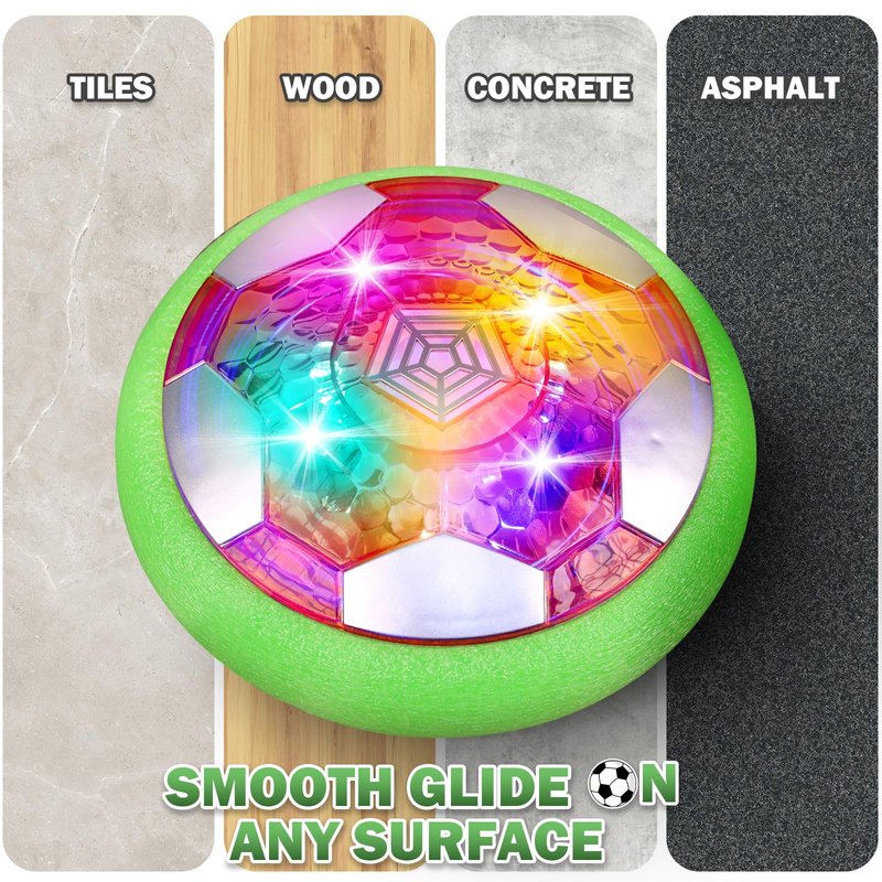 - [Innovative Hover Design] No matter the weather, experience the thrill of air soccer at home! This hover ball floats smoothly on any hard surface—whether wood, tiles, or concrete—turning any room into an instant soccer field.