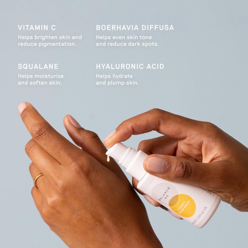 - Vitamin C brightens and restores radiance to dull skin