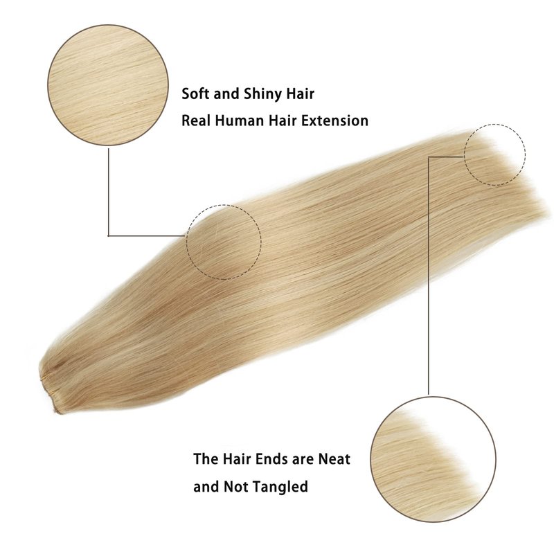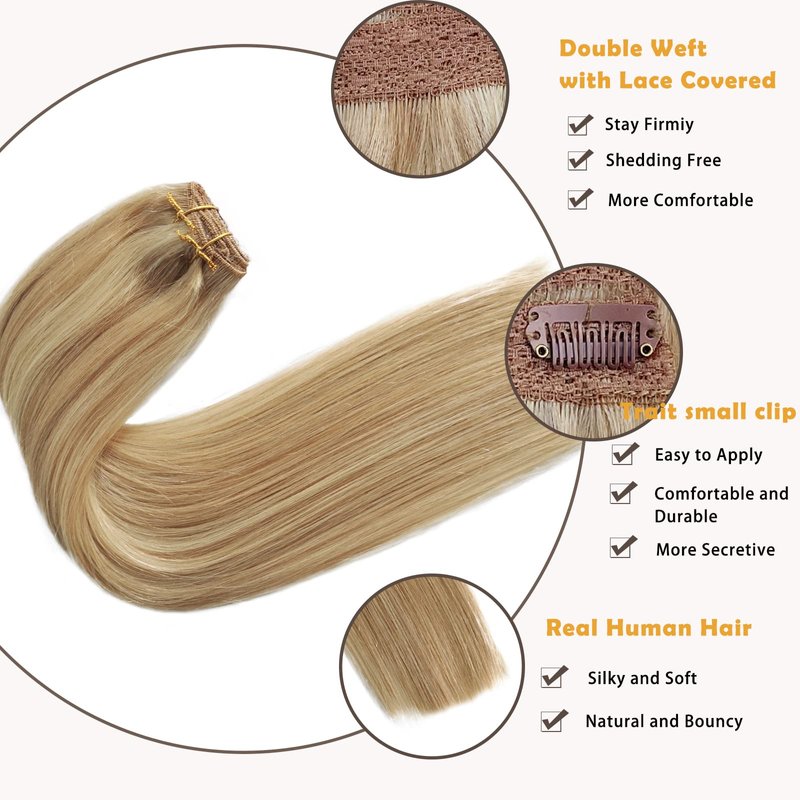 Balayage Remy Hair Extensions Clip in 20Inch 100g Golden Blonde Mixed Bleach Blonde Highlight Lace Weft Clip in Human Hair Extensions Double Weft 4pcs Thick Highlighted Extensions Clip on