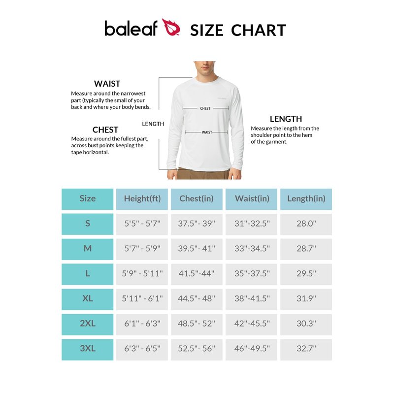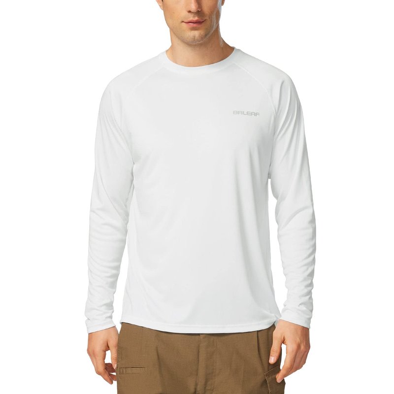 BALEAF Men's Sun Protection Shirts UV SPF T-Shirts UPF 50+ Long Sleeve Rash Guard Fishing Running Quick Dry White Size L