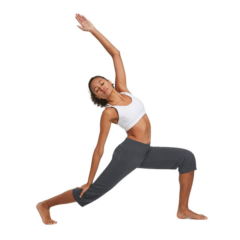 - Thick waistband, high-rise women's exercise capris with tummy control features. These capris pants are designed to minimize distractions and maximize comfort as you flow through yoga.