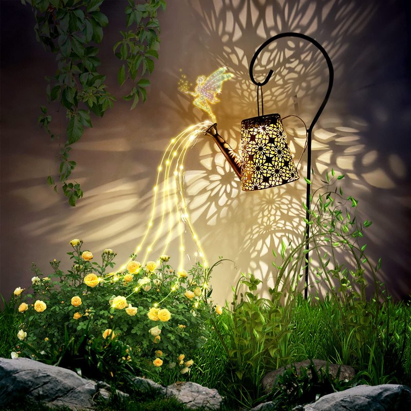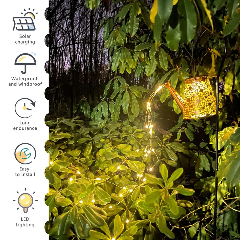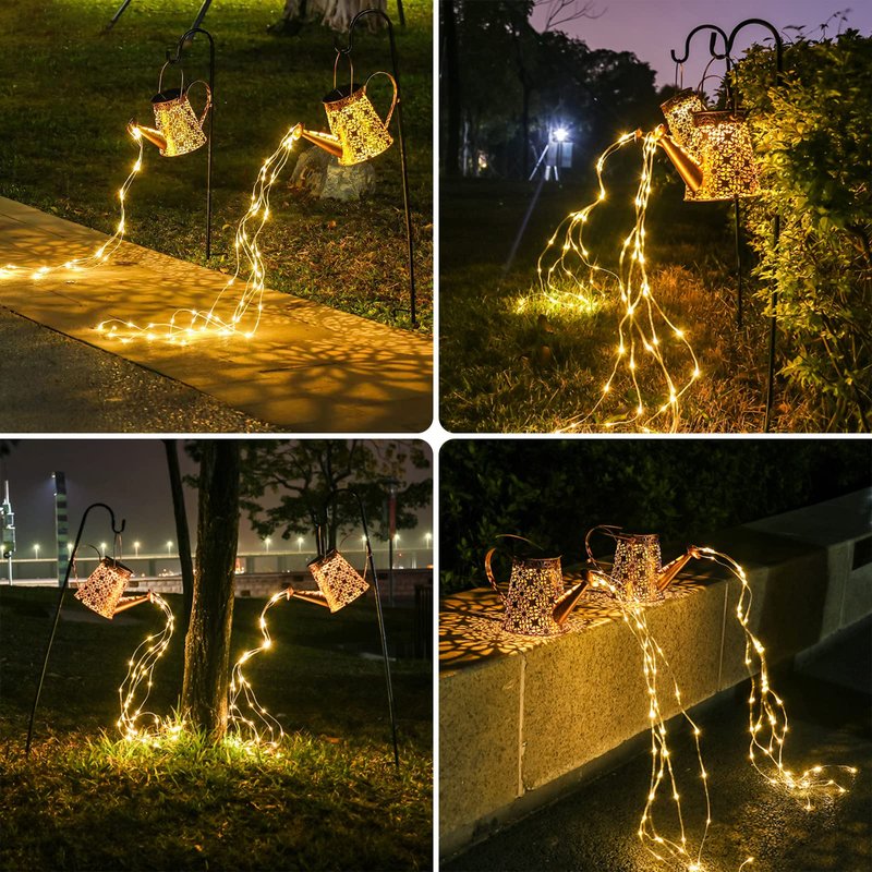 - 【OUTDOOR GARDEN LIGHTS】Our solar watering can light decor light collects sunlight during the day and lights itself up at night. It's like having a floating "kettle" in your garden at night that waters your flowers by itself.