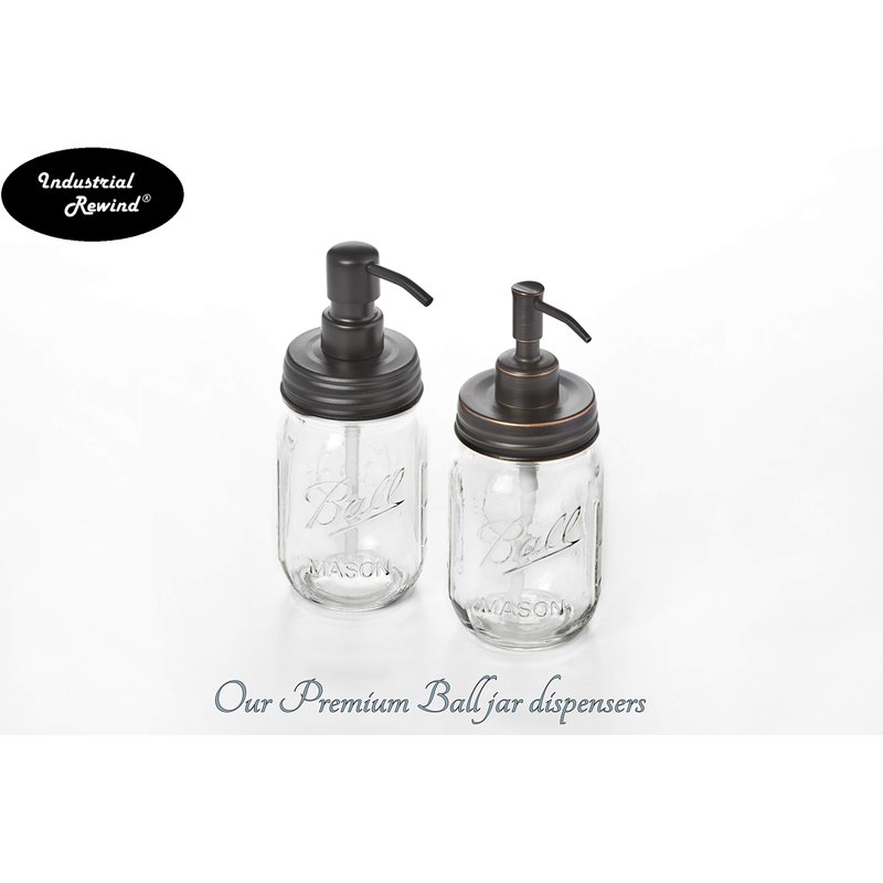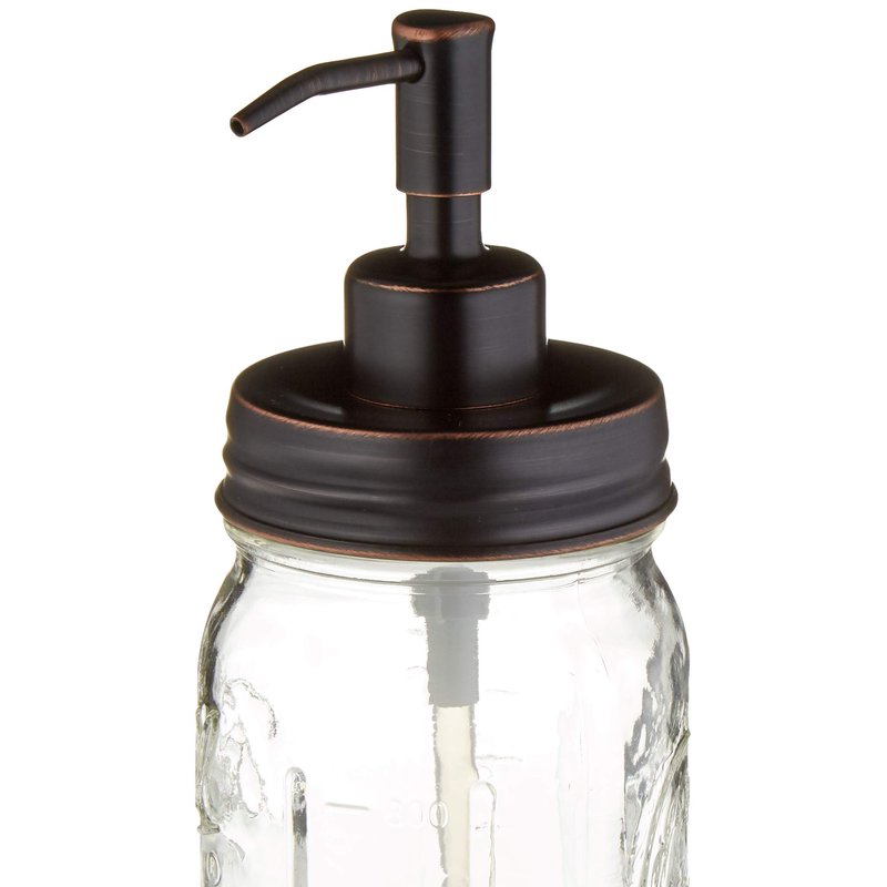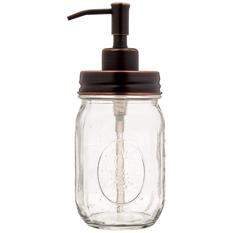 - Classic Ball Mason Jar Soap Dispenser – Ideal for hand soaps, lotions, shampoo, and essential oils this gorgeous soap dispenser for bathroom and kitchen use features a classic oil-rubbed bronze pump lid atop a clear 16-oz. Mason jar container.