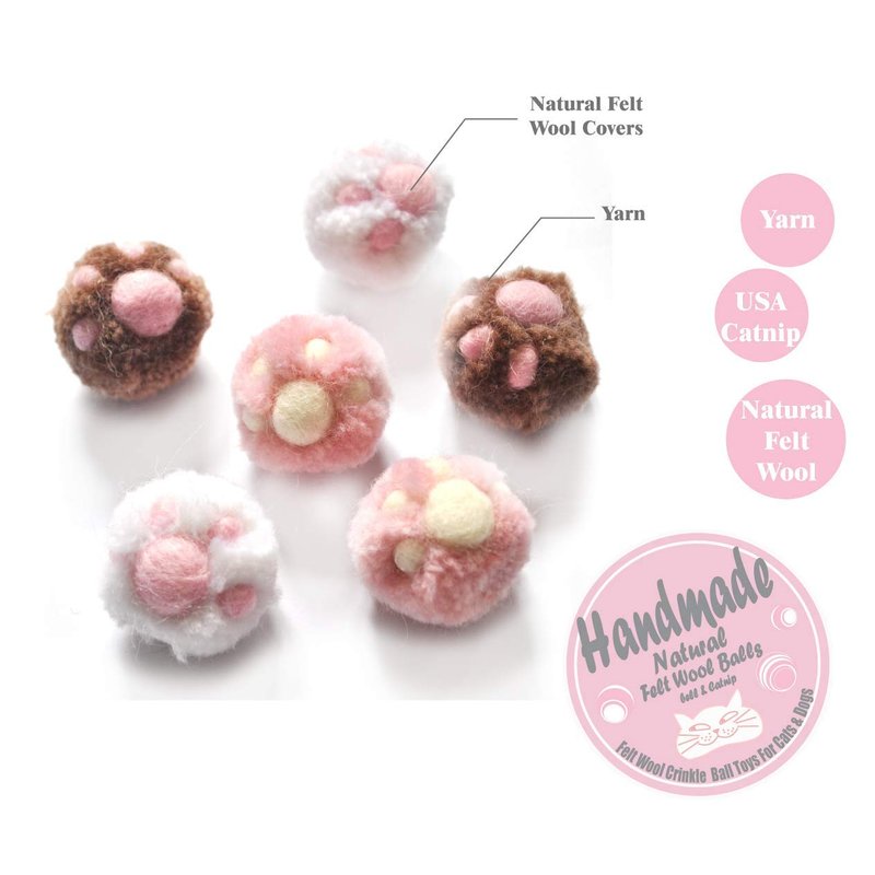 BALLMIE Cat Toys Ball Cat Owl Balls for Cats, Catnip Handmade Felt Wool & Yarn (Paw)