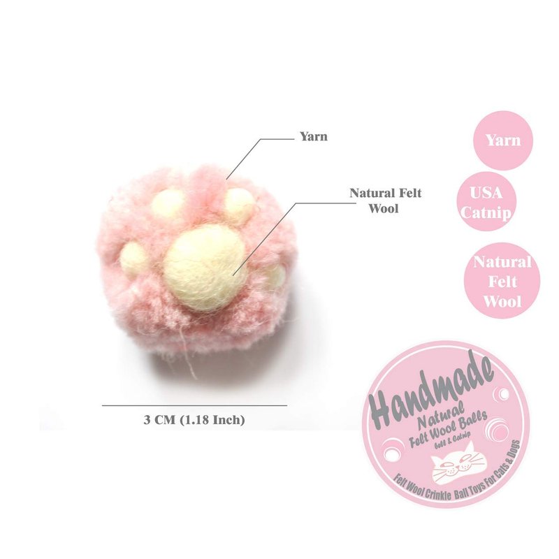 BALLMIE new ball toys for cat in 2019. The balls are handmade by felt wool and yarns. This toys is 3cm large and light weighted, which is easily scratched by cat nails and crinkled by our cat. The balls are soft and comfortable to be pressed and your kittens love this felt wool texture. This toys is for cats only. Please avoid playing by children.