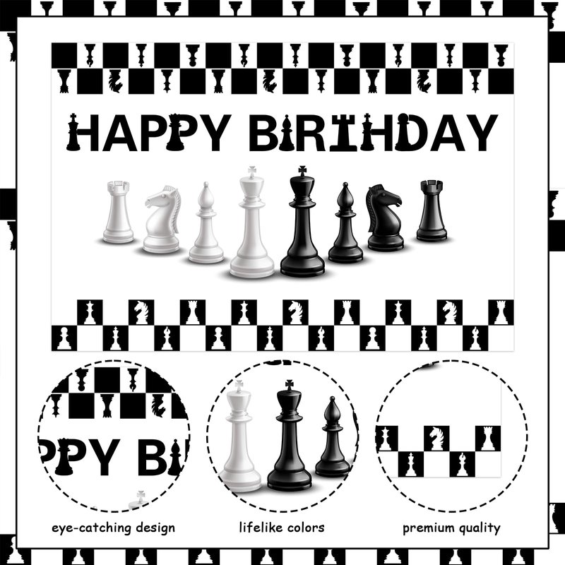 - Attractive design: The chess themed backdrop banner is eye-catching for the striking bold HAPPY BIRTHDAY in the middle with classical black and white color and surrounding designed checkered chess, a big photo background surprise for chess lovers.