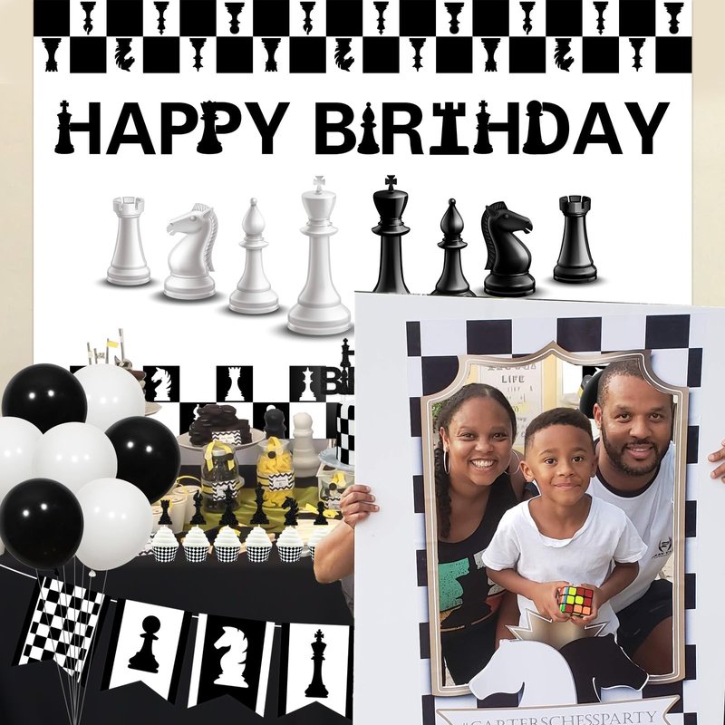 Balterever Chess Birthday Decorations International Chess Birthday Backdrop Banner Chess Theme Banner Garland Table Cloth Chess Birthday Cake Topper Funny Board Game Chess Birthday Party Decor