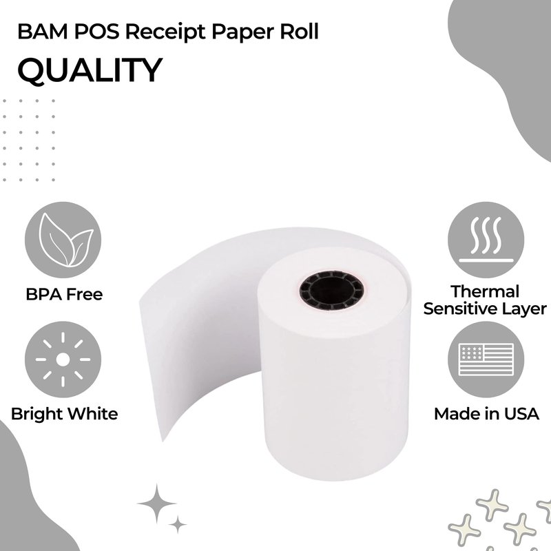 BAM POS Thermal Receipt Paper - BPA Free, Shrink Wrapped Rolls - Compatible With Clover Mini, Mobile, First Data FD130, FD50, FD55, Verifone Omni 3200, 3210, 3300 - Pack of 10 Rolls