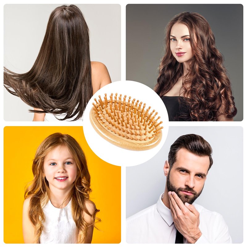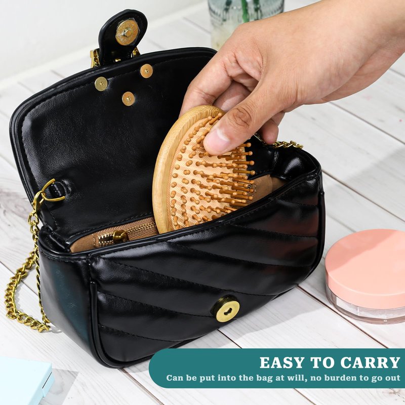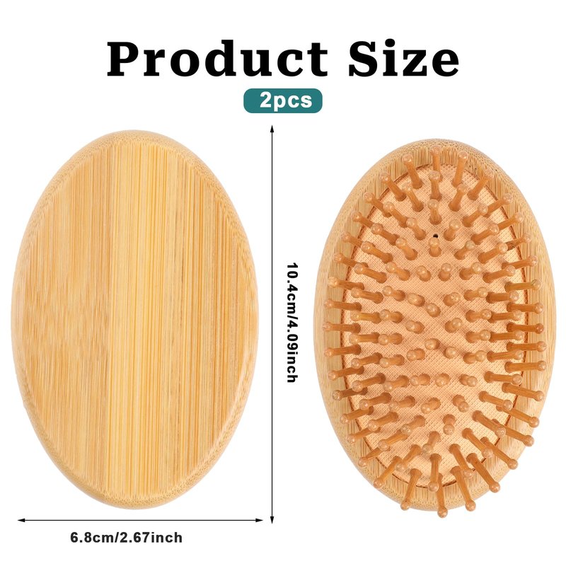 - WOOD BRUSH FOR HAIR - Theese 2 Pcs mini hair brushes are made by natural wood, bamboo and quanlity rubber, and the size of bamboo hair brush is 105mm X 68mm X 34mm(4.1inch X 2.5inch X 1.34inch). Small and exquisite, easy to carry.