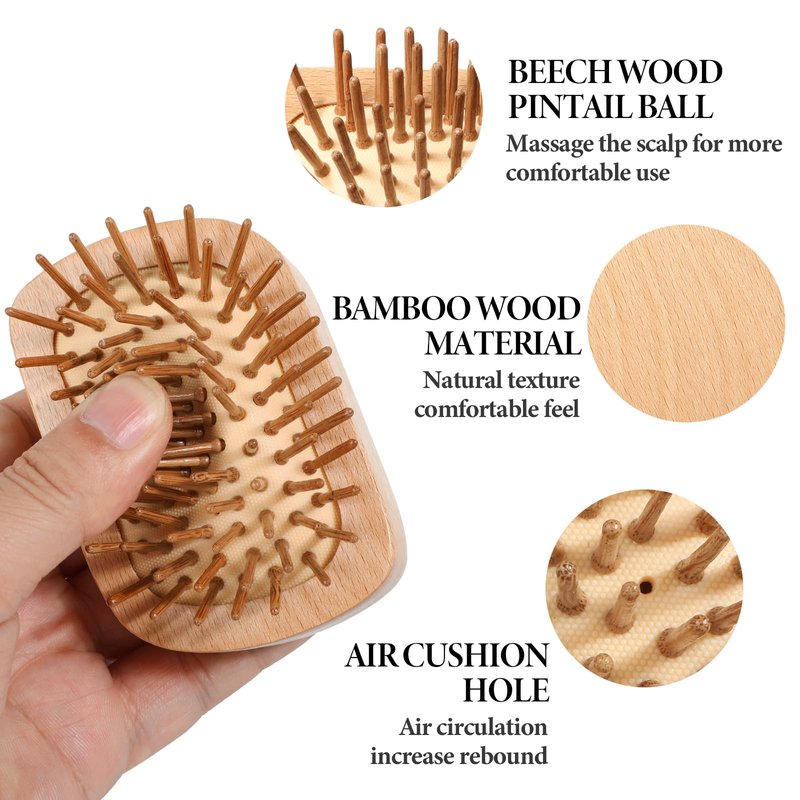 Bamboo Hair Brush, Mini Wood Hair Brush Wooden Scalp Massager for Hair Growth, Travel Detangling Hairbrush Air Cushion Hair Brushes for Women and Men All Hair Types, Easy of Holding
