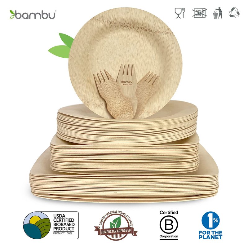 - Premium Quality - these bamboo plates are engineered to be lightweight, with a strength that will hold up to any food. Customers find our single use dinnerware to be heavy duty enough to use more than once. Bambu is the preferred premium disposable dinnerware