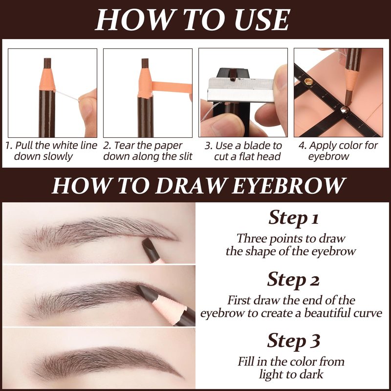 - 【Complete Kit】The package is including 5pcs eyebrow pencils, 100pcs eyebrow rulers, 10pcs scraping eyebrow knives and 1pc pencil sharpener. The complete kit is convenient and practical. It can effective in shaping and eyebrows. Perfect for accurate measurements and symmetrical marking, and create perfect brow proportions.