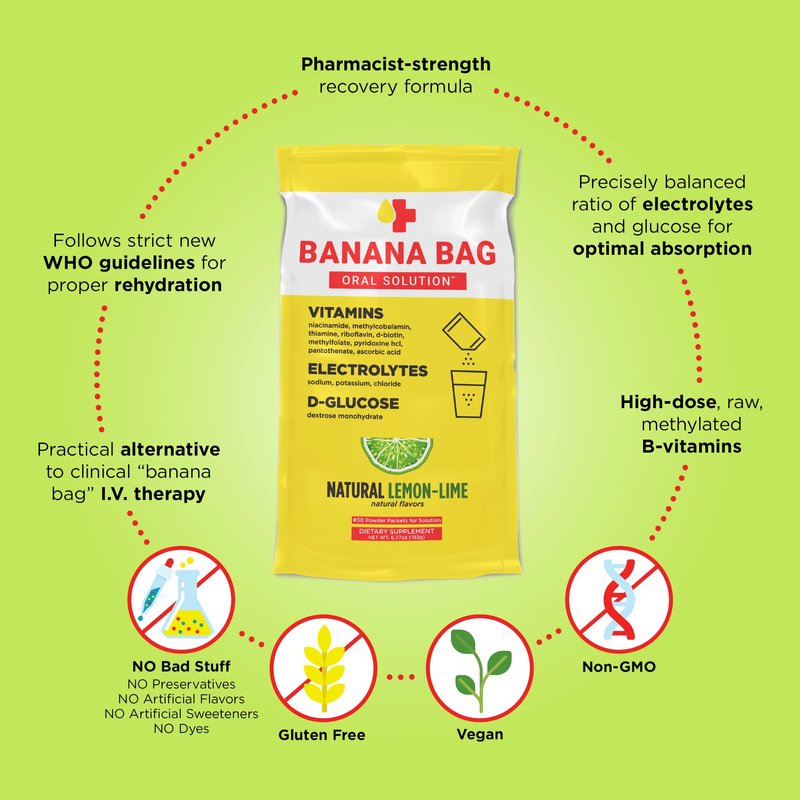 - WHAT IS IT? A formula of high-dose B-vitamins with electrolytes to be the practical oral alternative to traditional IV Banana Bag therapy.