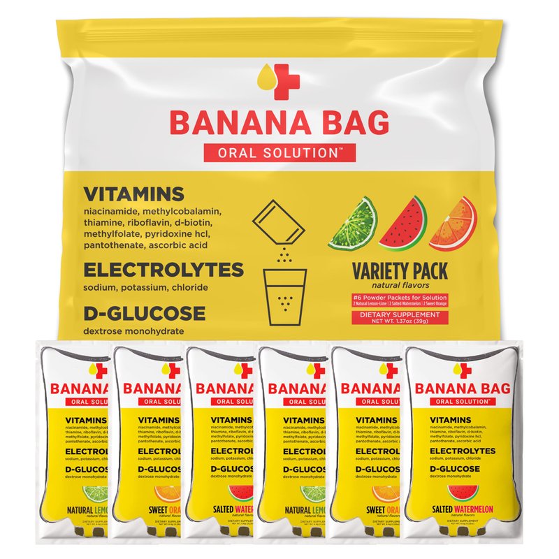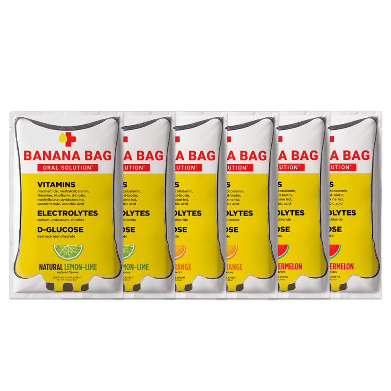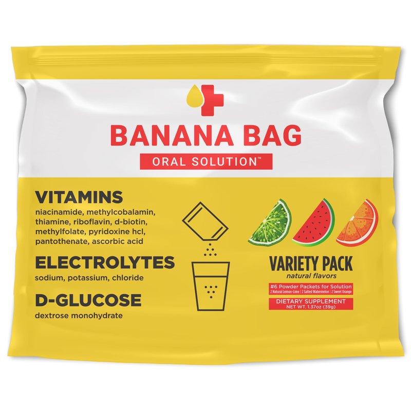 Banana Bag Oral Solution - Pharmacist Recovery Formula - Electrolyte & Vitamin Powder Packet Drink Mix - Variety Pack of 6
