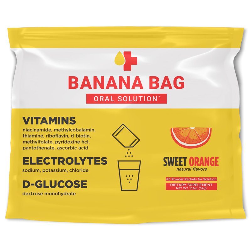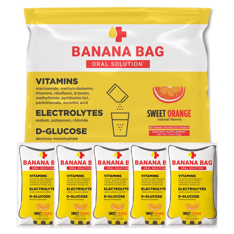 Banana Bag Oral Solution: Sweet Orange (5-Pack) Pharmacist Formulated Electrolyte Vitamin Recovery Drink