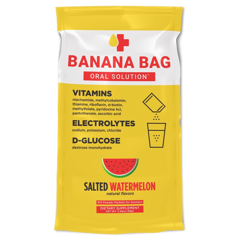 Banana Bag - Pharmacist Hydration Recovery Formula - Electrolyte & Vitamin Powder Packet Drink Mix - Salted Watermelon 15-Pack