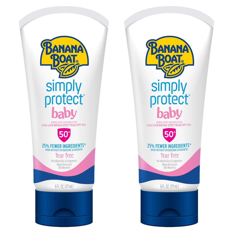 Banana Boat Baby 100% Mineral Sunscreen Lotion SPF 50 Twin Pack | Banana Boat Baby Sunscreen, Sunscreen for Babies, Oxybenzone Free Sunscreen, Banana Boat Lotion Sunscreen SPF 50, 6oz each