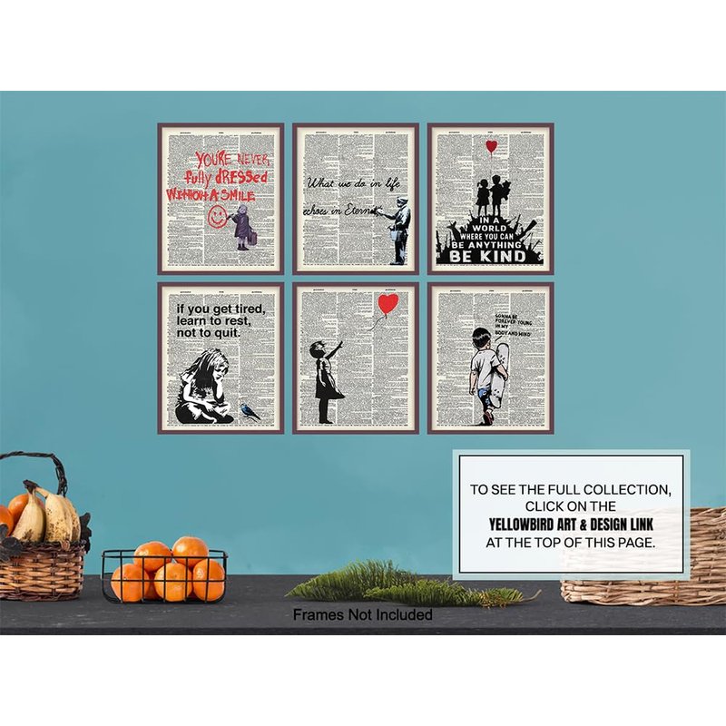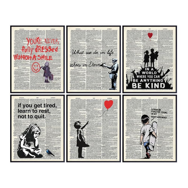 Banksy Wall Art Set - Inspirational Quotes Room Decor - Motivational Graffiti Street Art for Teens Bedroom, Living Room, Dorm - Set of 6-8x10 each Poster Picture Prints Home Decoration