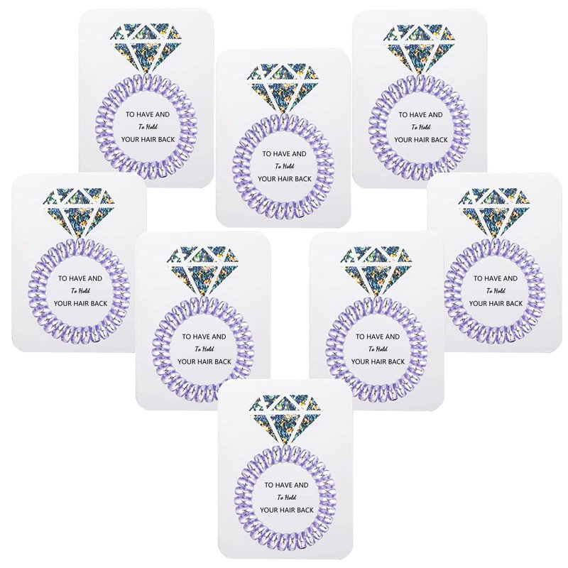 - đăBachelorette Party FavorsăThis spiral hair ties gift box includes 8 individually packed purple scrunchies for the bridesmaid or friends. Perfect as bachelorette party favors or bridesmaid gifts!