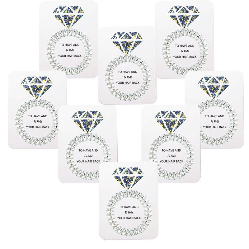 - đăBachelorette Party FavorsăThis spiral hair ties gift box includes 8 individually packed silver scrunchies for the bridesmaid or friends. Perfect as bachelorette party favors or bridesmaid gifts!