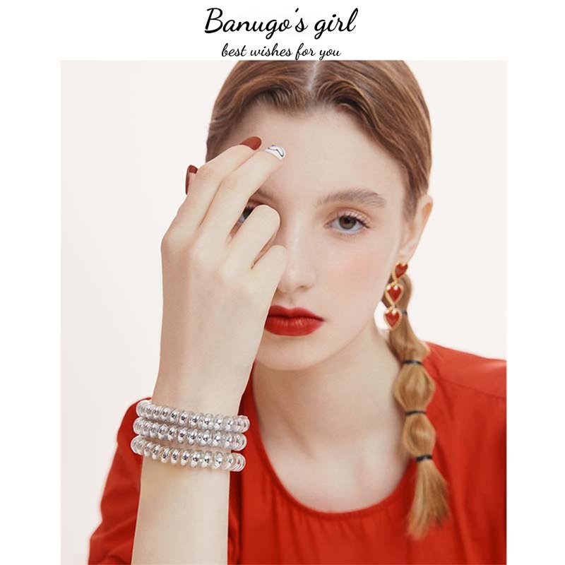 - đăStylish Bracelet Around the WristăThe Bachelor hair ties can comfortably stretch to be worn on your wrist as a cute bracelet. If coil happens to stretch larger than its original size, simply place it in a cup of warm water or use a hot blow dryer to shrink it to its original size.