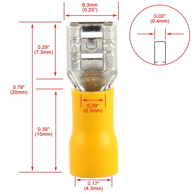 - Package Content : 100 x Female Insulated Crimp Terminals