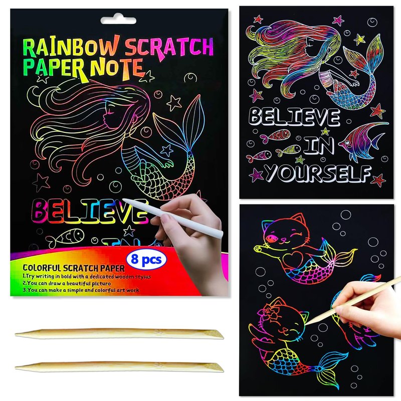- 【Safety & Less Mess Rainbow Scratch Paper】All rainbow scratch paper are made of premium paper making it extremely thick and hard to damage or torn. Our scratch art for kids is made of water-based odorless coating, no paint, non-toxic, non-polluting, and won't harmful for kids. Ideal rainbow scratch paper, rainbow scratch art for kids, rainbow scratch notebook, rainbow scratch pad, rainbow scratch paper for kids, rainbow scratch book, rainbow art set, rainbow scratch paper notebook