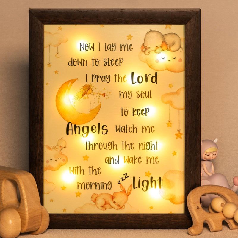 Baptism Gifts for Boys Girls - Night Light Nursery Decor Frame For Bedtime Prayer, Best Christening Dedication Catholic Gifts for Kids, Baby Shower Baptismal Gift, Personalized Godparents Gifts(Brown)