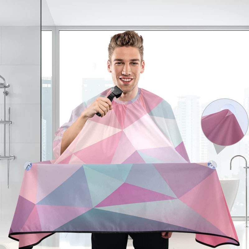 Barber Cape Salon Cape Hairdressing Apron Haircutting Waterproof Geometry Pink for Adults Men Clients with designs Adjustable Neck Closure