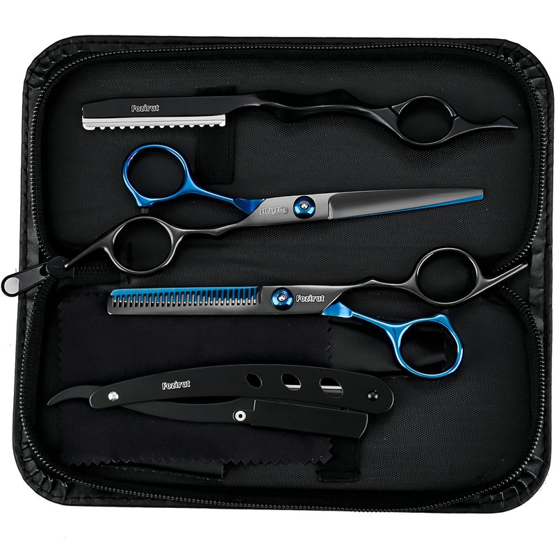 - ✂️ 🪒: PREMIUM STAINLESS STEEL: Fozirut professional hairdressing scissors and hair cutting razor are made of high-quality stainless steel. Hair cutting scissor with extremely sharp blades for clean cut, evenly trim hair with ease, can trim wet and dry hair, no worry about hair split end.