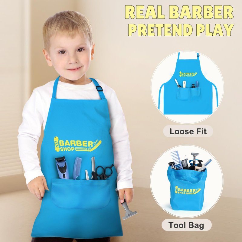 - [Perfect Toy Gifts for Kids] Boys and Girls Barber toys with 21 Pcs salon shaving accessories packaged in a premium box are great for ages 3 and up to play. Great for pretend play fashion and style, play beauty salon, gift idea for Birthday, Holiday, Christmas, and an interesting learning resource in the class, perfect hair salon toys shaving kit for kids 3 4 5 6+.