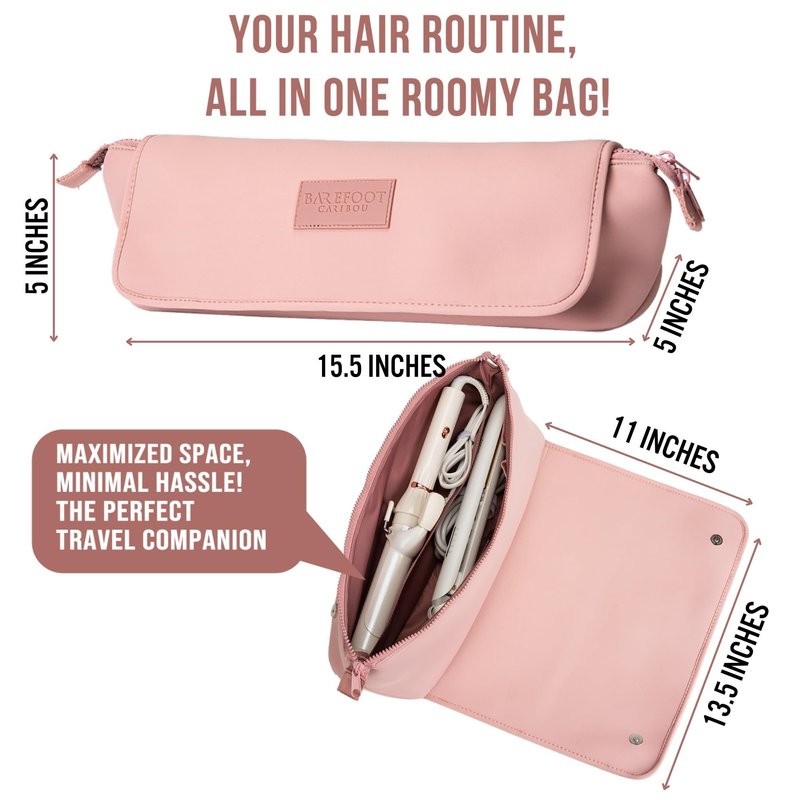 BAREFOOT CARIBOU Hair Tools Travel Bag and Heat Resistant Mat for Flat Irons, Straighteners, Curling Iron, and Haircare Accessories, 2-in-1 design, with Interior Pockets, Portable Organizer (Dune)