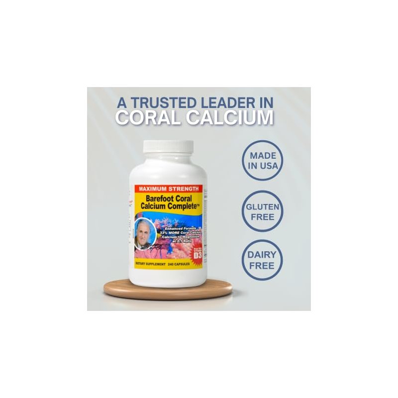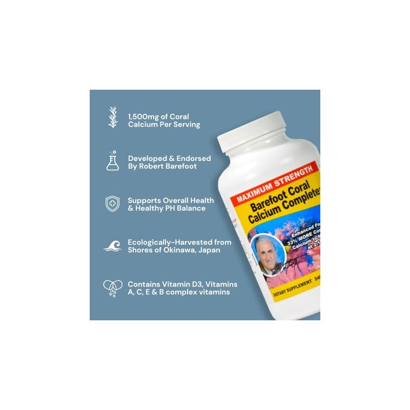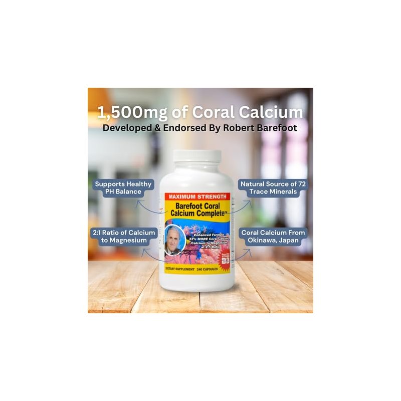Barefoot Coral Calcium Complete 1500mg, 240 Capsules- Coral Calcium Supplement Developed by Bob Barefoot- Supports Overall Health & PH Levels- Contains Calcium, Magnesium, & Vitamins