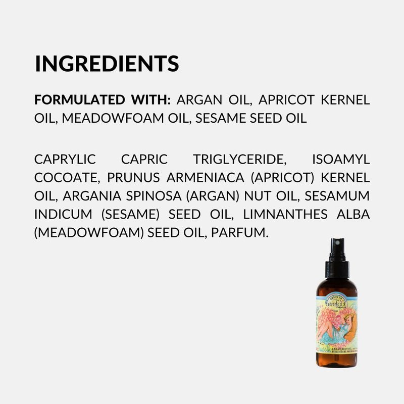 - Formulated with Argan Oil, Apricot Kernel Oil, Meadowfoam Oil and Sesame Seed Oil