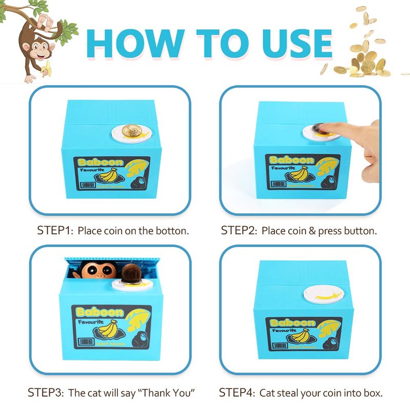 - 【Fun and Savings in One】 This novelty monkey money bank is perfect for both fun and saving money at the same time. It's an engaging way for children to develop their saving habits while enjoying the process