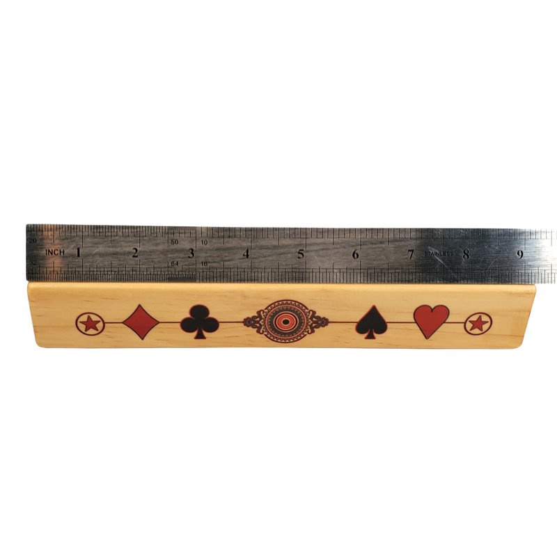 PLEASE NOTE: Playing cards, ruler and coin are shown for demonstration purposes only and are not included with trump marker. Due to the nature of wood, the actual color or shade of the wood will change.