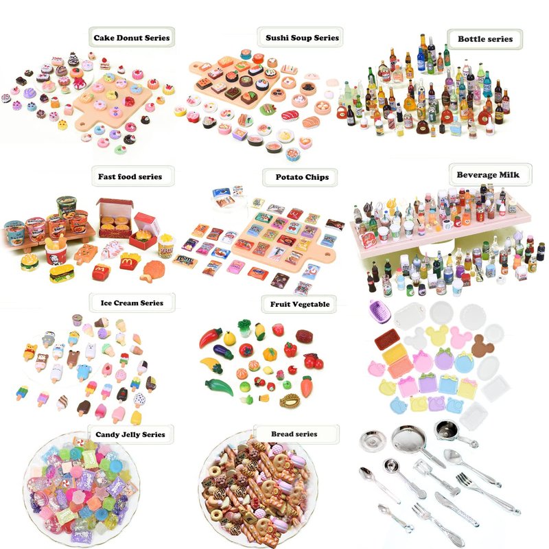 - 【Value cute miniature accessories set】150 Value Packs that contain -- 110 Foods + 20 Drinks + 10 Plates + 10 Forks. Mixing colors and shapes randomly, enough quantity and styles, can help relieve stress, develop creativity and imagination, and bring you a lot of fun.