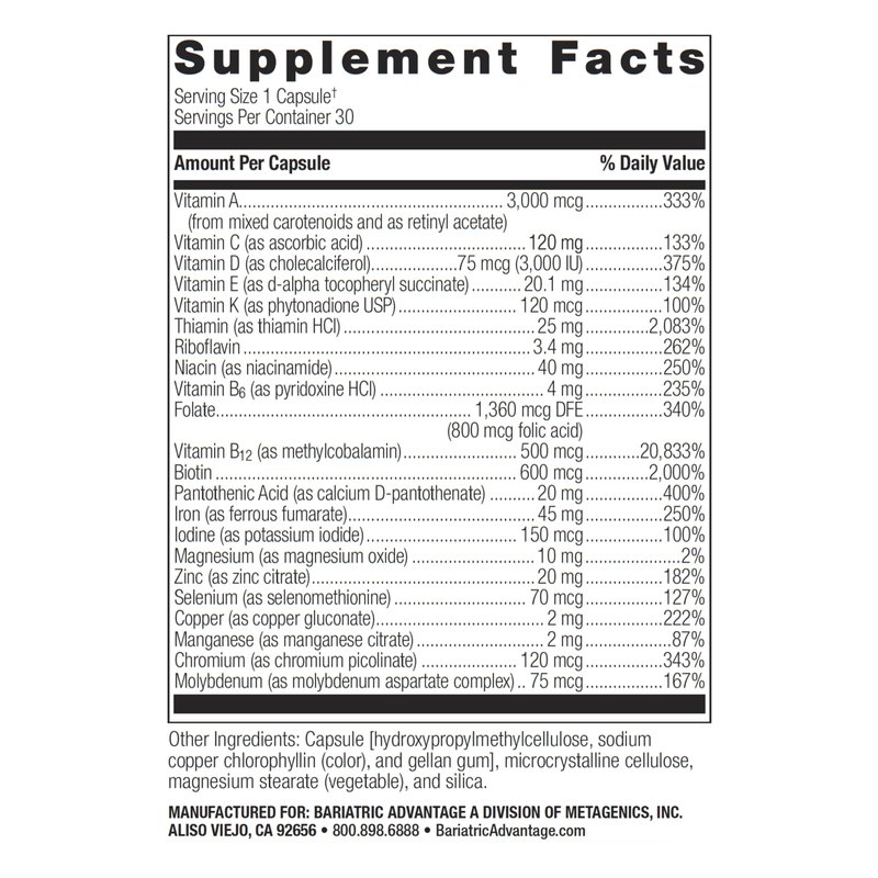 - Daily Multivitamin for Bariatric Patients: A potent, iron-fortified once-daily capsule designed to fulfill your everyday nutritional needs