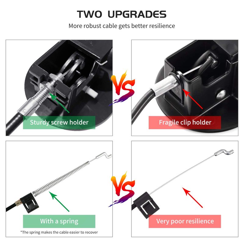 - 【Latest Design】: Added spring to recliner cable end for faster reset during use. Replaced metal clip with two screws on top of cable for stronger, more flexible connection to handle. Easily adjust screws on cable top to change exposed length and perfectly fit furniture.