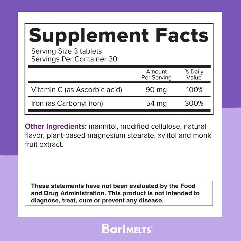 BariMelts Iron Supplement with Vitamin C - 1 Month Supply (90 Fast-Dissolving Tablets) - Post-Op Bariatric Vitamins
