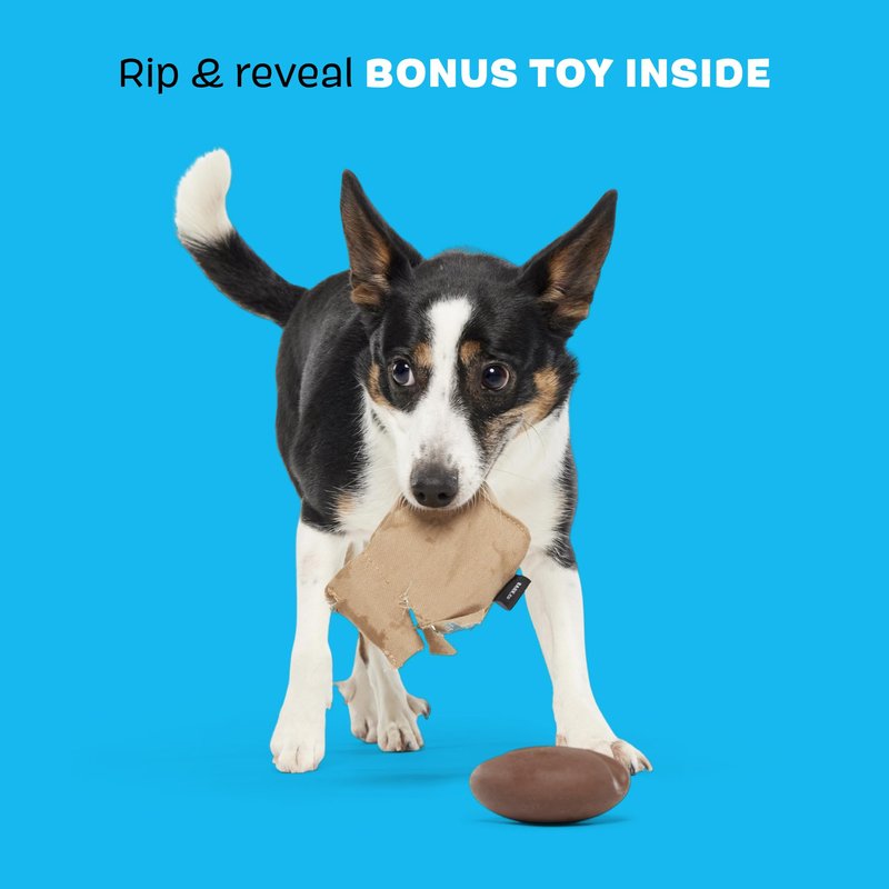 - Hidden Toy Inside: This toy features a tearable canvas outer layer with a bonus toy hidden inside, perfect for keeping your pup engaged and excited. This two-in-one design offers a mix of textures and surprises, making it ideal for playful pups.