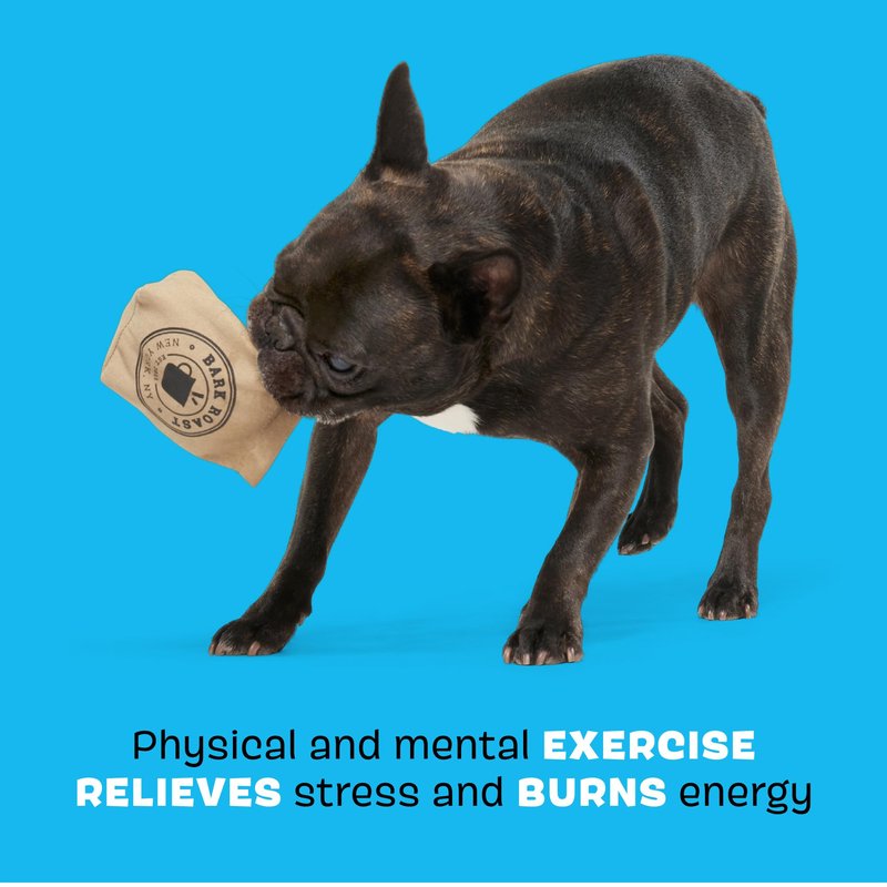 Meet Jitter Pug Coffee Bean: Your pup will never switch to decaf after playing with this coffee bean and bag dog toy! You'll perk up playtime when your pup discovers what’s underneath the tough-but-tearable canvas cover: a natural rubber core coffee bean dog toy! This rip-and-reveal toy not only has a vanilla latte scent—but also a satisfying squeaker! Spread peanut butter on the grooves for an extra tasty treat. Great for medium dogs and brewed in house, but chewed in your house.