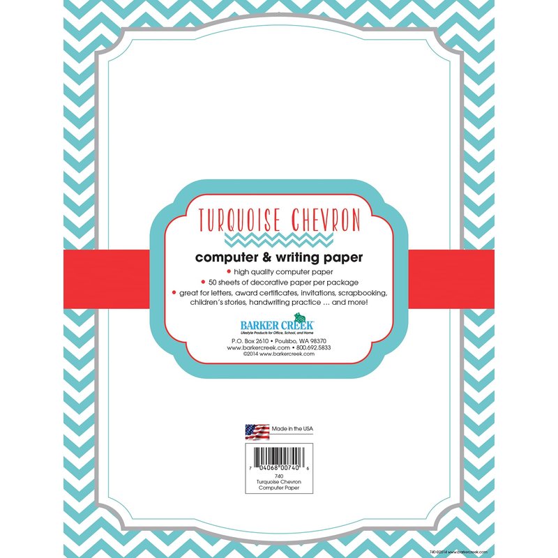- Size and Other Details: Each package includes 50 sheets of 8 ½ x 11 inch paper. This decorative paper is compatible with most laser and inkjet printers. Coordinating products are available. Search: Barker Creek Chevron