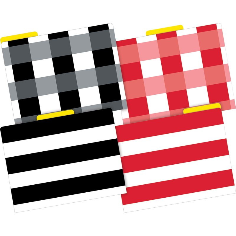 - Dimension Details: The set includes 12 letter-size file folders. They are fully reversible with a fun pattern on one side and vibrant yellow on the other. Coordinating products are available. Search: Barker Creek Buffalo Plaid & Wide Stripes.