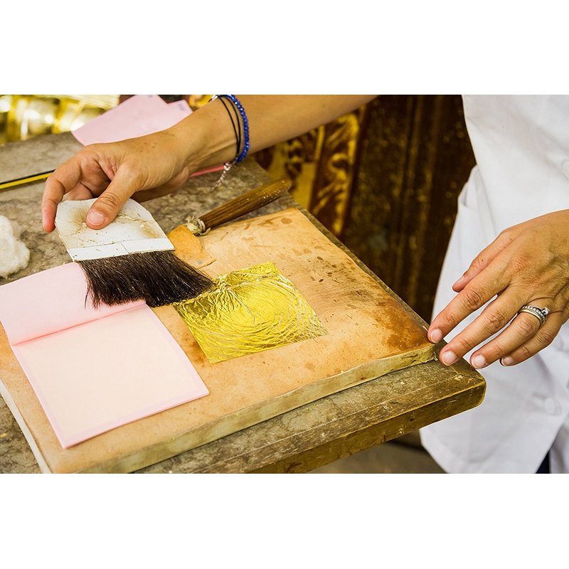 Genuine Silver Leaf Transfer sheets in a booklet of 25 sheets, each separated by parchment paper. Each silver leaf sheet measures 3.75 x 3.75 inches. and the booklet of 25 sheets will cover a surface area of approximately 2.4 square feet, not allowing for wastage.